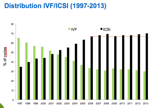 Η μέθοδος ICSI χρησιμοποιείται πλέον παγκοσμίως στα 2/3 περίπου των περιπτώσεων εξωσωματικής γονιμοποίησης.